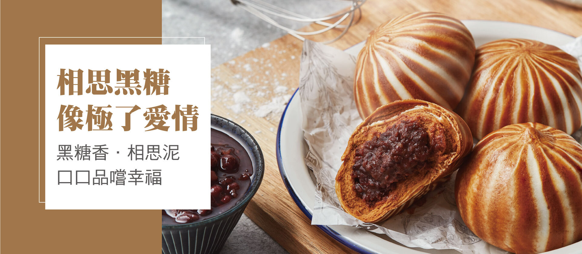 黑糖甜而不膩的軟嫩外皮,撥開充滿鬆軟綿密的紅豆,不甜不膩,香滑潤口 。