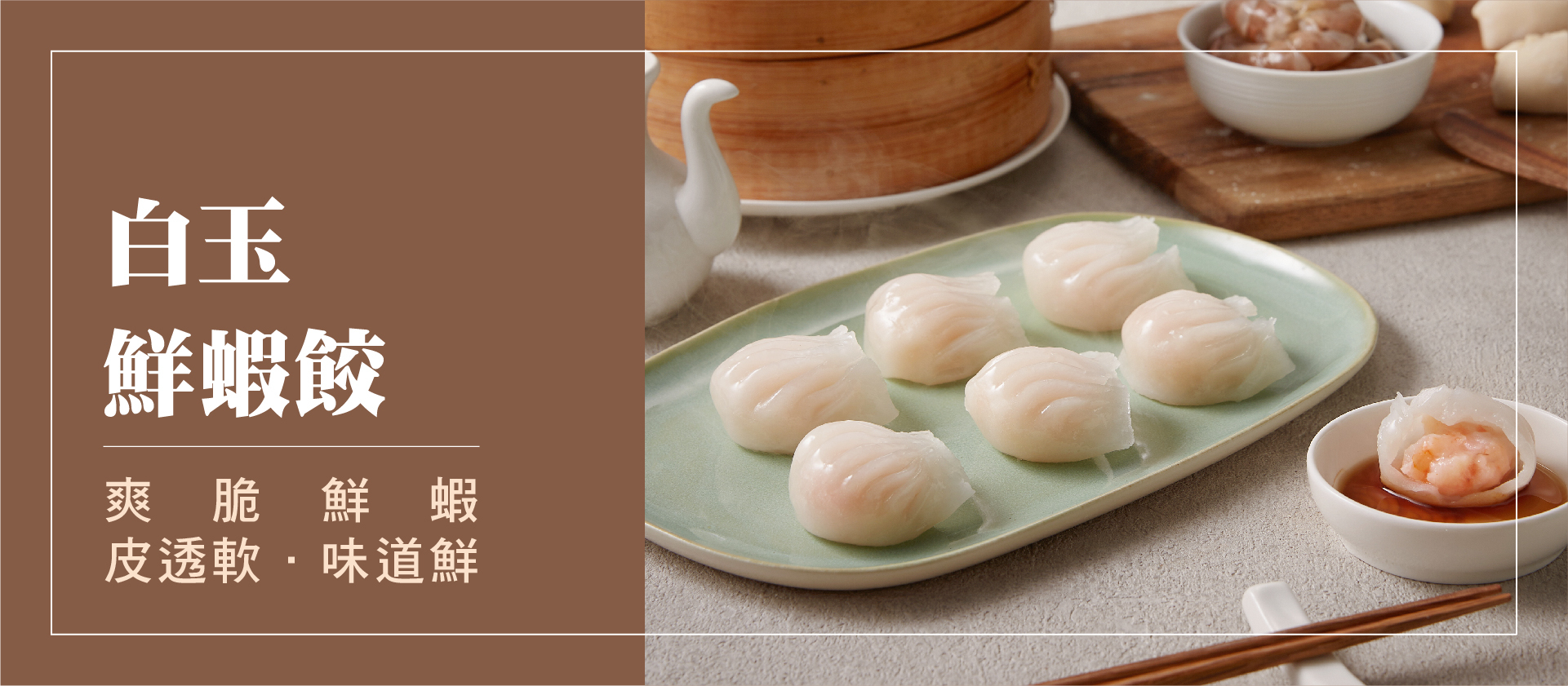 半月型剔透如水晶的外皮與飽滿蝦仁內餡,每一口皆充滿鮮甜海味,脆口彈牙。